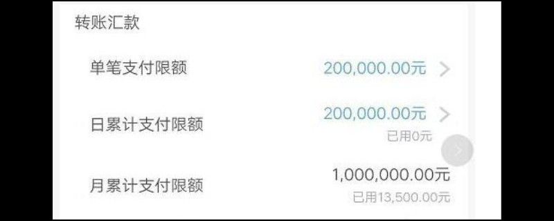 第五步、当日限额为20万元时,月限额就会变成100万元。